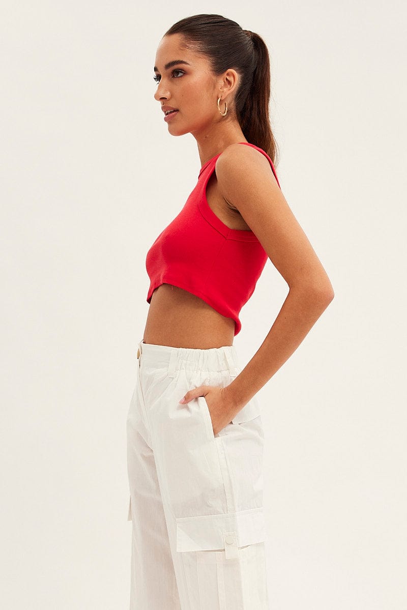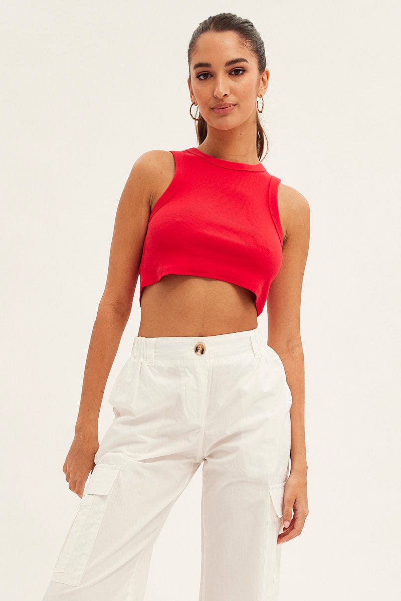 Red Tank Top Sleeveless Crew NeckRed Tank Top Sleeveless Crew Neck