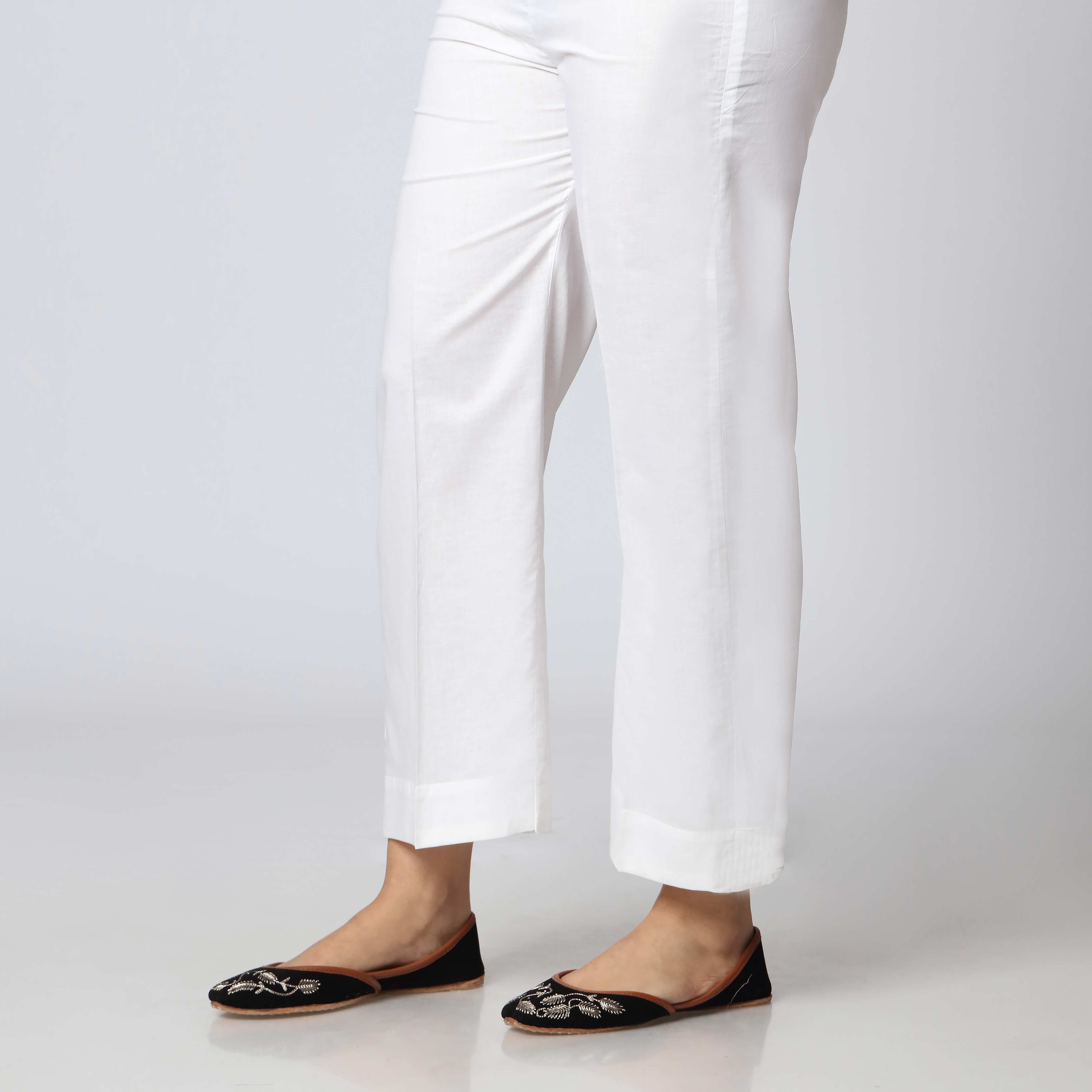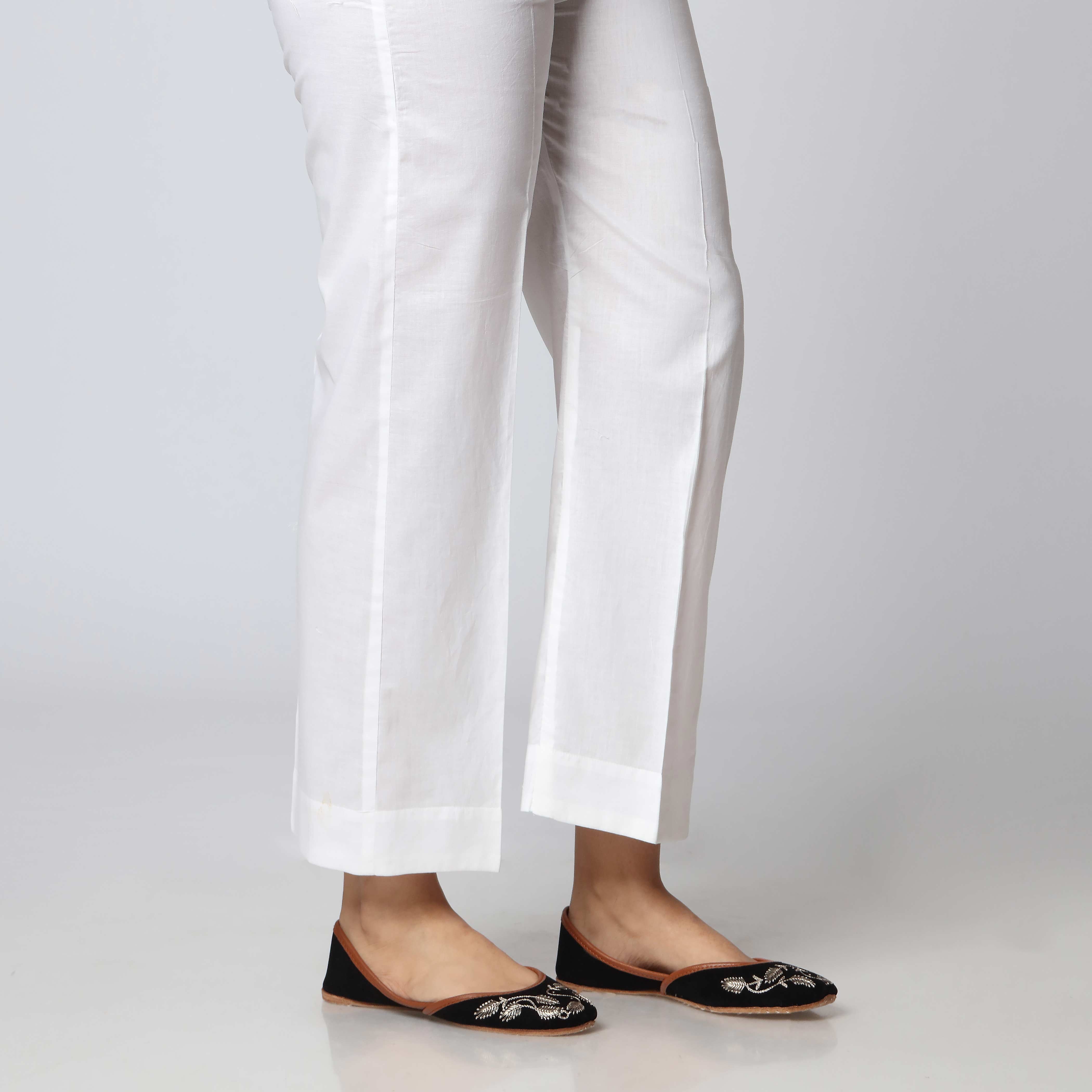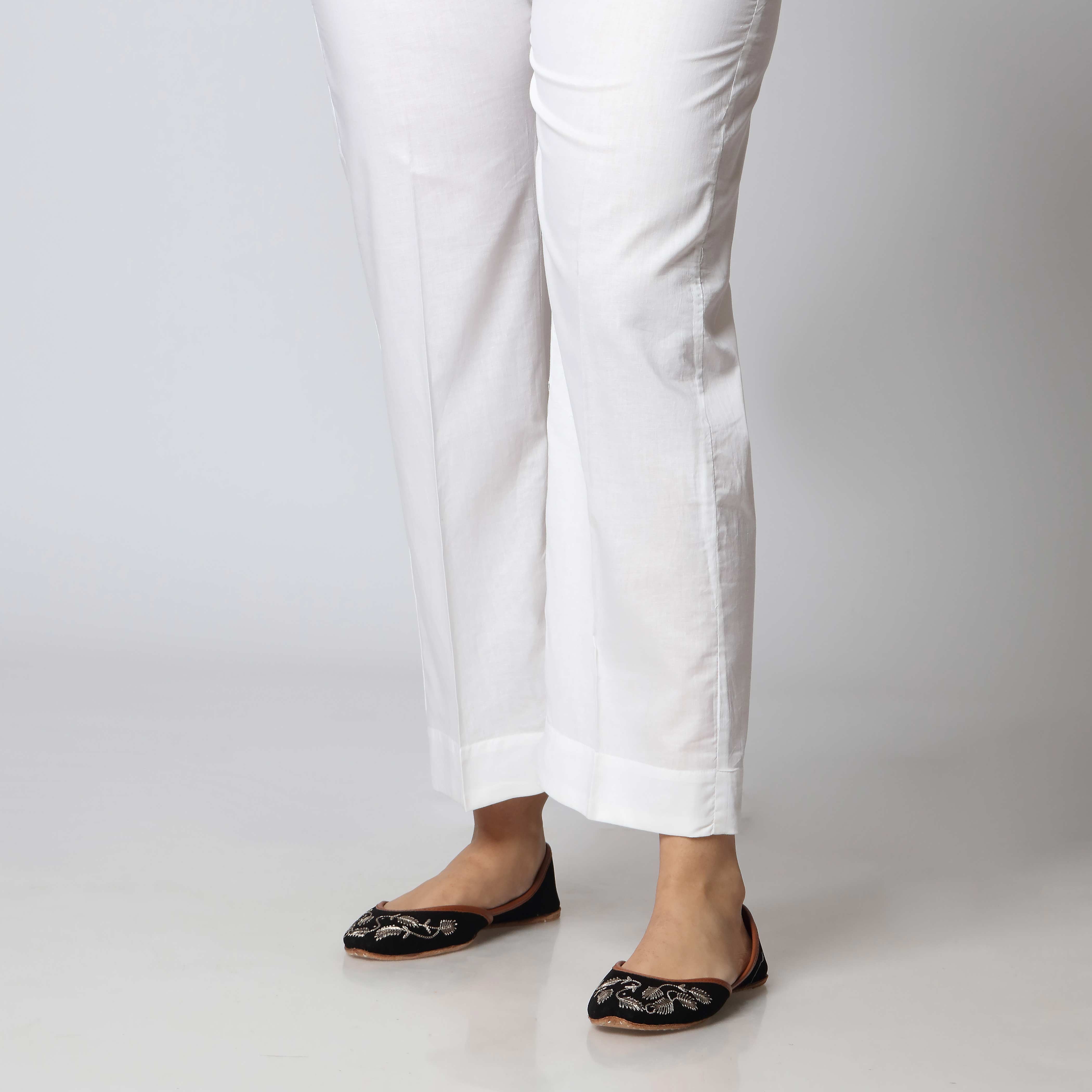 Easy to pair white plain cambric slim fit trousers for ladies.