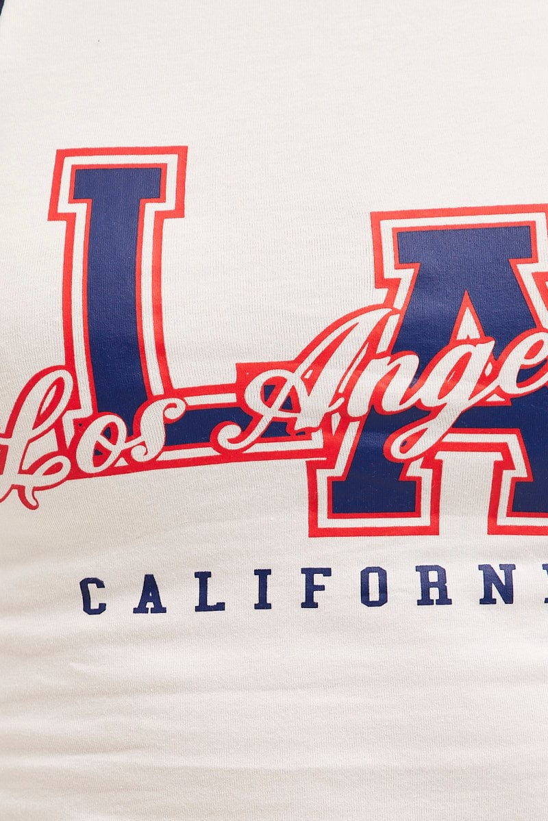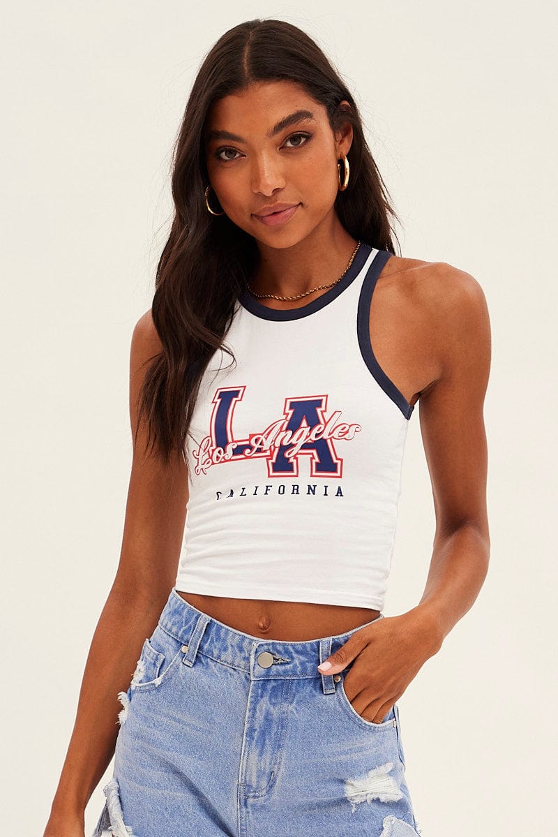 White Graphic Tank La Sleeveless Contrast Bind Crop